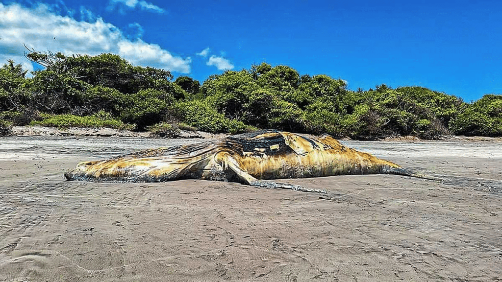 La ballena jorobada fue encontrada en estado de descomposición en la playa El Salamar, ubicada en Jucuarán, en el Área Natural Protegida el Caballito, en Usulután.