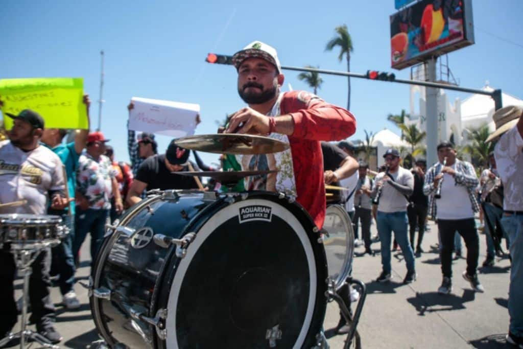 El miércoles pasado, cientos de músicos marcharon por las calles de Mazatlán y se congregaron en la Zona Dorada, donde se ubican los principales hoteles, para expresar su desacuerdo con la prohibición de tocar en las playas sinaloenses.