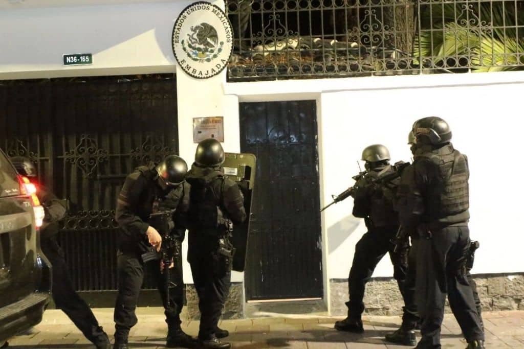 Según la Alianza Bolivariana, las acciones de Ecuador al irrumpir en la legación mexicana son “completamente discrecionales e ilegales constituyen una flagrante violación a la Convención de Viena sobre Relaciones Diplomáticas, a la Convención sobre Derecho de Asilo y a la soberanía de México, las cuales deben ser rechazadas por los países civilizados del mundo entero”.