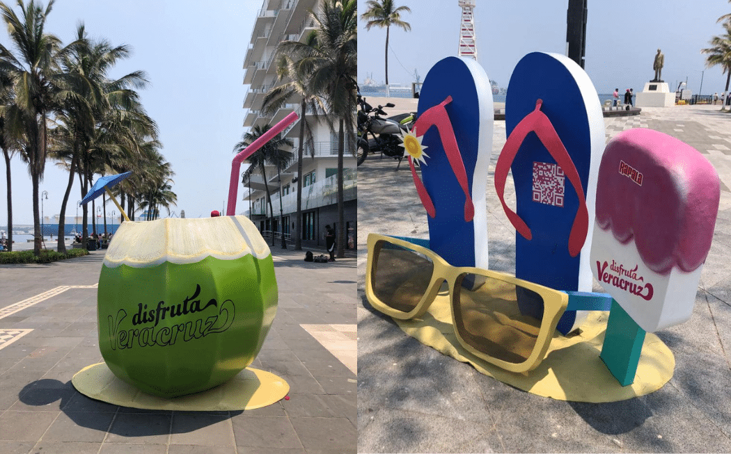 Además del coco gigante, también colocaron las chanclas grandotas. Estas coloridas chanclas gigantes se encuentran en la plaza del Marino Mercante, cerca del muelle de pescadores. Es otro lugar divertido para tomar fotos y disfrutar del ambiente costero de Veracruz.