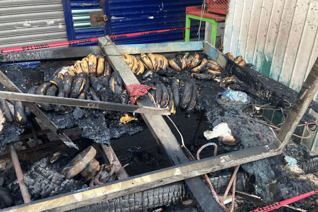 Según relatos de testigos presenciales, el incendio se desencadenó tras un cortocircuito generado por una maraña de cables eléctricos, seguido de una chispa que alcanzó el puesto, principalmente construido con materiales inflamables como madera y lonas.
