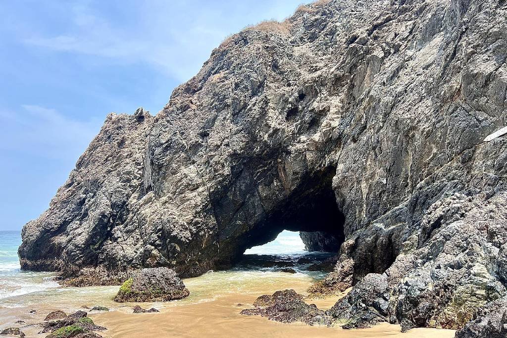 Con una formación rocosa de una altura de 35 metros y una peculiar forma cóncava en su parte central, esta playa cautiva a sus visitantes con su belleza incomparable. Sus dos entradas en los extremos permiten que el mar fluya, creando un espectáculo natural que cambia con cada marea.