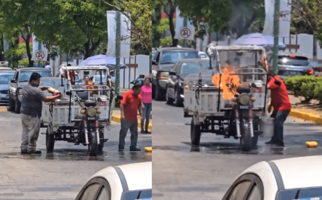 Video: Ingenio mexicano, hombre controla el incendio de una moto con refresco