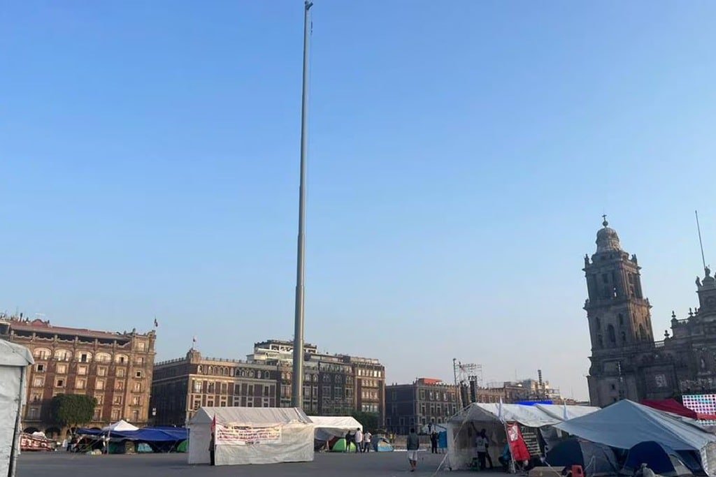 La Plaza de la Constitución también amaneció dividida por vallas metálicas para permitir que se respete el plantón del magisterio disidente, y también que se lleve el acto de la oposición que estará encabezado por Xóchitl Gálvez, candidata presidencial de la alianza PAN- PRI y PRD.
