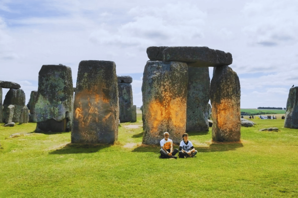 Dos activistas de la organización ecologista Just Stop Oil fueron detenidos el miércoles por rociar con pintura los monolitos del famoso yacimiento prehistórico británico de Stonehenge. La policía de Wilshire, en el suroeste de Inglaterra, informó en un comunicado que arrestó a dos sospechosos, mientras que el grupo de defensa del medioambiente se atribuyó la responsabilidad de la acción, asegurando que la pintura en polvo utilizada “pronto desaparecerá con la lluvia”.