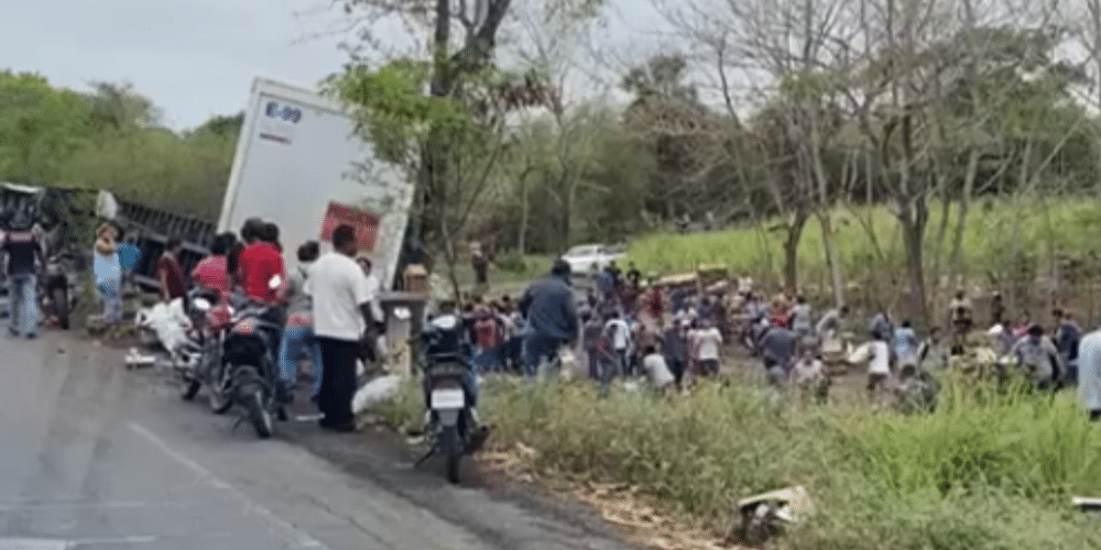 Volcadura de tráiler cargado con cerveza desata rapiña en Tierra Blanca, Veracruz