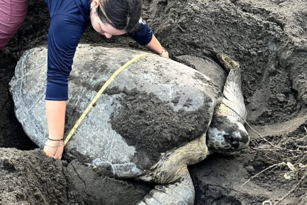 “¿Sabías que las hembras de tortuga verde que anidan en las playas de nuestro Centro Veracruzano de Investigación y Conservación de la Tortuga Marina tienen una talla promedio de 103 centímetros de largo de caparazón? Pero la hembra de estas fotografías midió 111.5 cm, superando la talla promedio registrada para el sitio”, señaló Contreras Bautista.