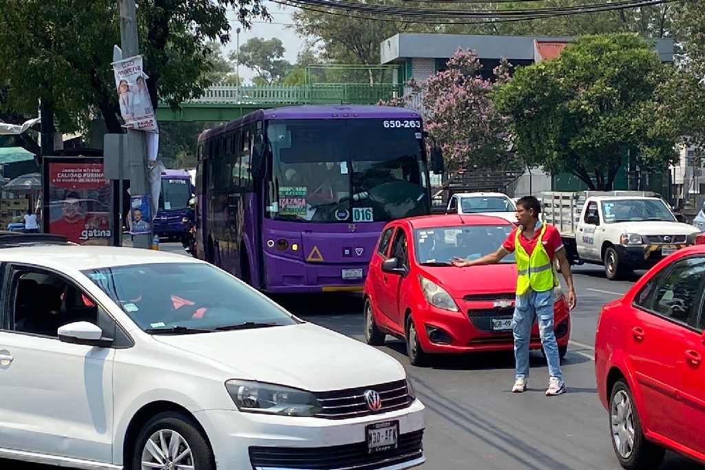 Aparecen “semáforos humanos” en horas pico para detener el tráfico en diferentes avenidas principales de la capital; algunos de ellos operan con chalecos reflejantes con logos de la Ciudad de México.