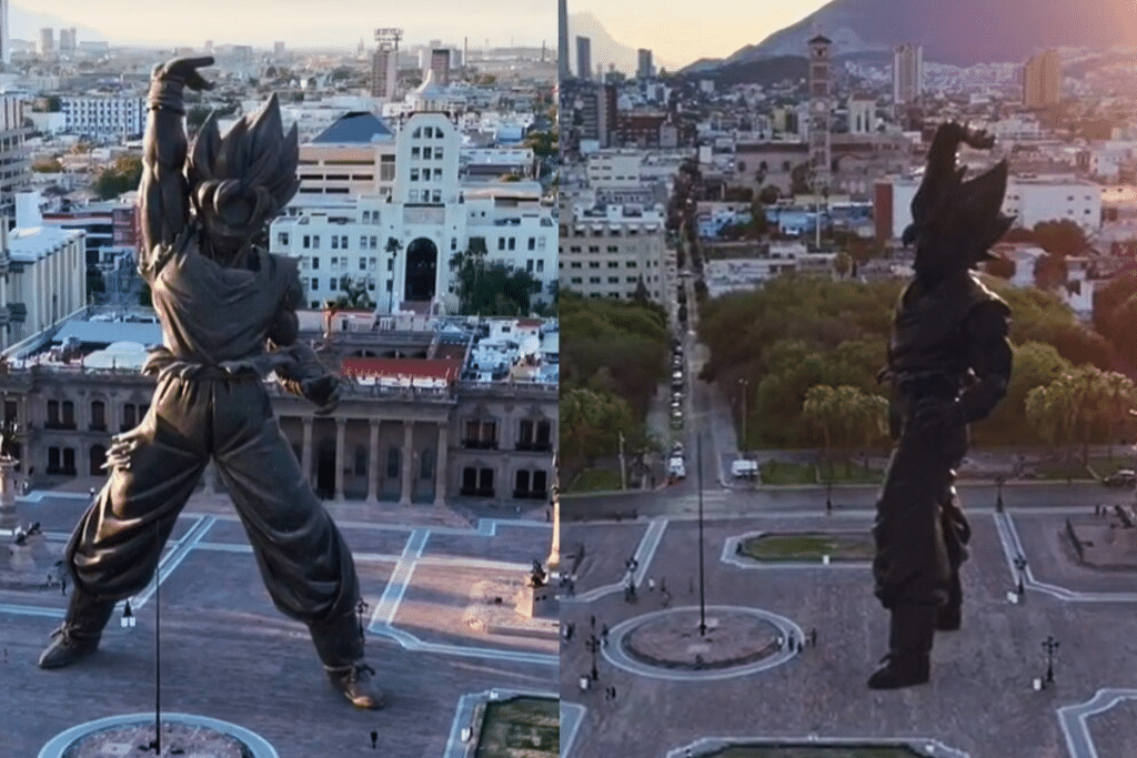 Una supuesta estatua de Goku, el icónico guerrero saiyajin de Dragon Ball, ha causado un gran revuelo en redes sociales. Videos compartidos en TikTok muestran al personaje en la Explanada de los Héroes, frente al Palacio de Gobierno de Nuevo León, lo que ha despertado la curiosidad y emoción entre los usuarios.
