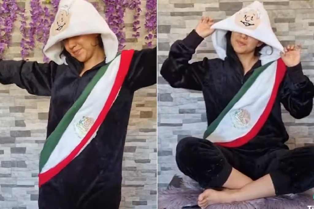En la grabación, se observa a la tiktoker vestida con un disfraz de peluche color negro, asemejando el traje del Mandatario, incluyendo una capucha con el rostro del Presidente.