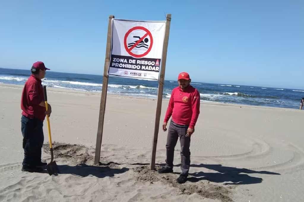 Iván Alejandro Barrón Ureña, comandante de la corporación dio a conocer que los visitantes nacionales Edson “N” y Ana “N” de 45 años, ingresaron a bañarse en la zona de las escolleras de la playa Gaviota, pese a que en ese sitio se colocaron banderines rojos, que prohíben el ingreso por el grave riesgo del oleaje.