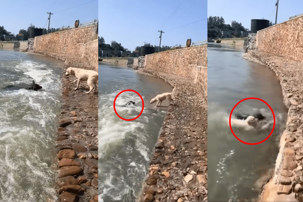VIDEO: Perrito se lanza al agua para salvar a su amigo lomito
