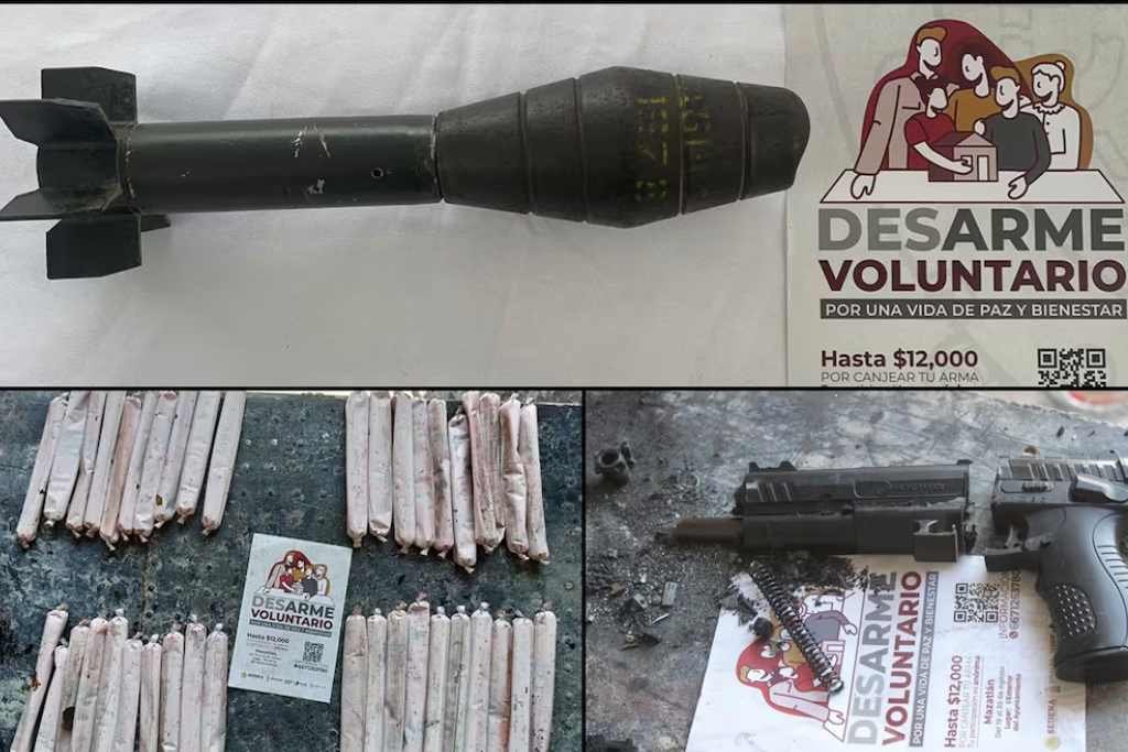 En seis municipios del sur de Sinaloa, los ciudadanos entregaron en forma voluntaria un total de 215 armas y explosivos, por lo que recibieron una derrama económica de 612 mil 525 pesos a cambio. Entre lo donado destacan por su alta peligrosidad en los hogares 92 explosivos, de los cuales 85 eran cartuchos de dinamita.