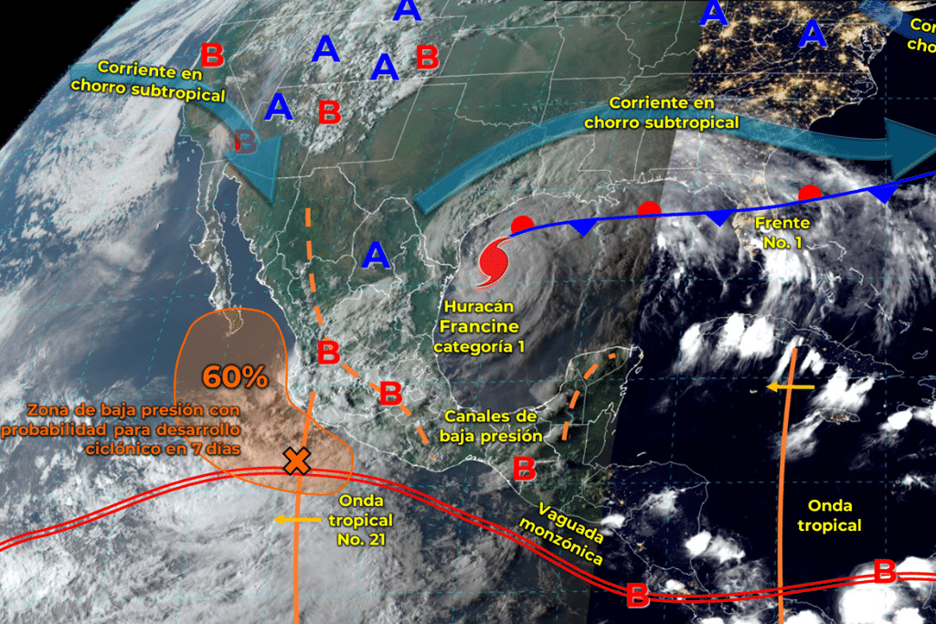 - Península de Yucatán: Intervalos de chubascos en Campeche, Yucatán y Quintana Roo, con ambiente cálido a caluroso.