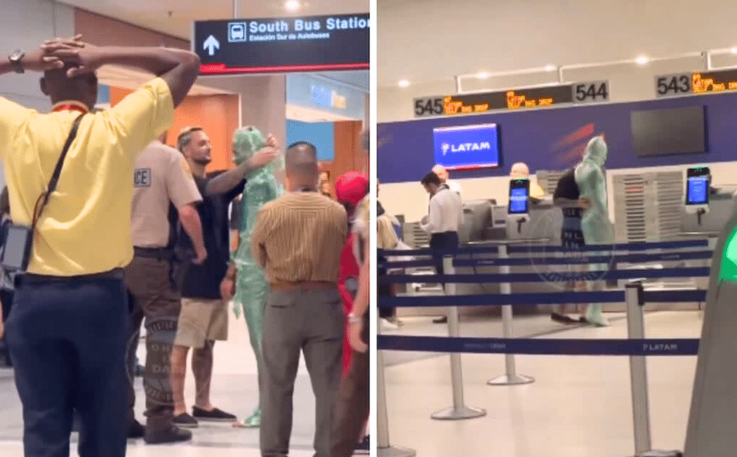 Sin embargo, el peculiar intento de evadir las normas de seguridad fue rápidamente desarticulado. La aerolínea LATAM negó la solicitud de los hombres, y minutos después, el personal de seguridad del aeropuerto intervino, retirando la cinta adhesiva del hombre y llevándolo para ser identificado.
