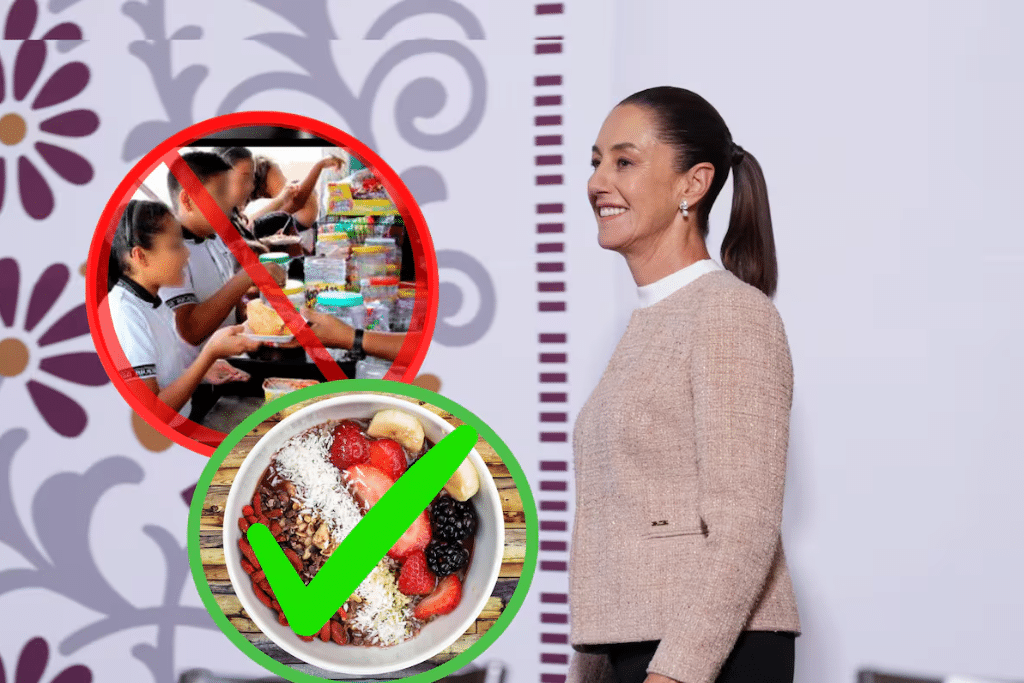 “Esta es la norma publicada el 30 de septiembre, próximo lunes vamos a hablar de ello. Son algunos meses que se determinaron para su aplicación, y viene Mario Delgado y Salud para poder explicar cómo vamos a hacer realidad, finalmente, que las niñas y los niños en las escuelas no consuman alimentos procesados”, dijo la Presidenta.