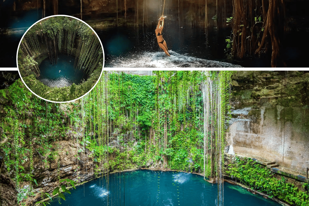 Son al menos 10 cenotes escondidos de Yucatán, aunque puede haber más. Iniciamos con Ik Kil, localizado a solo 3 km de la zona arqueológica de Chichén Itzá, tiene una profundidad de 48. metros, cuenta con un acceso de 90 escalones y tiene una forma cilíndrica.