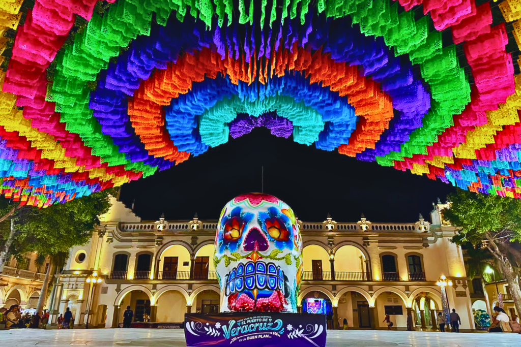 A pocos días del Día de Muertos, el ayuntamiento de Veracruz ha comenzado con los preparativos para celebrar esta festividad en familia y mantener viva una de las tradiciones más importantes de México. En el zócalo de la ciudad se ha instalado una gran calavera decorada con vibrantes papeles de colores, ofreciendo un escenario ideal para que las familias veracruzanas se tomen la tradicional fotografía y celebren el colorido de la temporada.