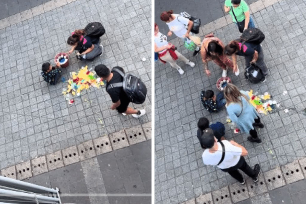 En TikTok, videos capturaron el momento en que el niño se encontraba sentado en el suelo, rodeado de gelatinas semiderretidas, mientras la multitud pasaba sin ofrecerle ayuda. Las imágenes reflejan una indiferencia que antes no se había visto, señal de que la comunidad ha tomado conciencia del engaño.