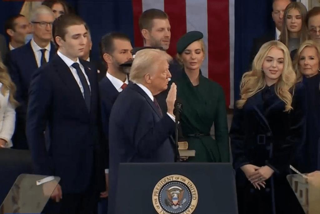“Juro solemnemente que ejerceré fielmente el cargo de Presidente de los Estados Unidos y que, con lo mejor de mi capacidad, preservaré, protegeré y defenderé la Constitución de los Estados Unidos”, dijo Trump en su juramento.