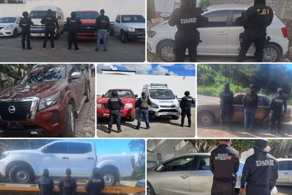 La Fiscalía General del Estado, la Secretaría de Seguridad del Pueblo y la Fuerza de Reacción Inmediata Pakal, realizaron el aseguramiento de 4 vehículos que se encontraban en calidad de abandonados en el tramo carretero de terracería Zinacantán-El Pinar, y al realizarles una inspección a sus medios de identificación, arrojaron con reporte de robo.