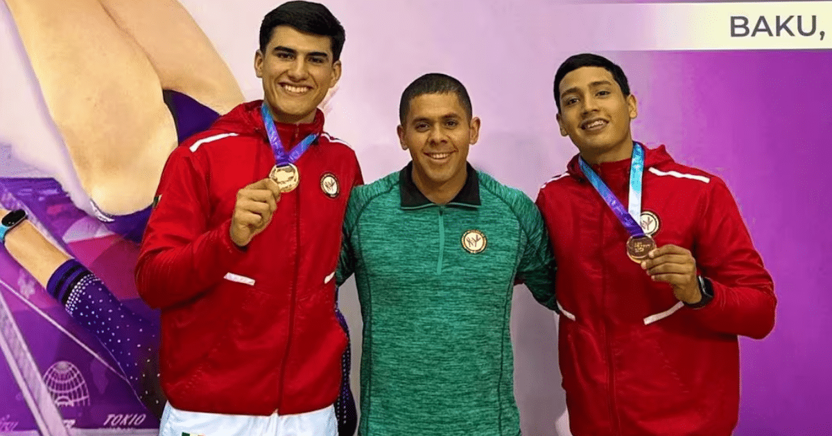 México logró histórico podio este domingo en Bakú, Azerbaiyán, con la dupla integrada por Donovan Guevara y Saúl Zúñiga en la Copa del Mundo de Gimnasia de Trampolín.