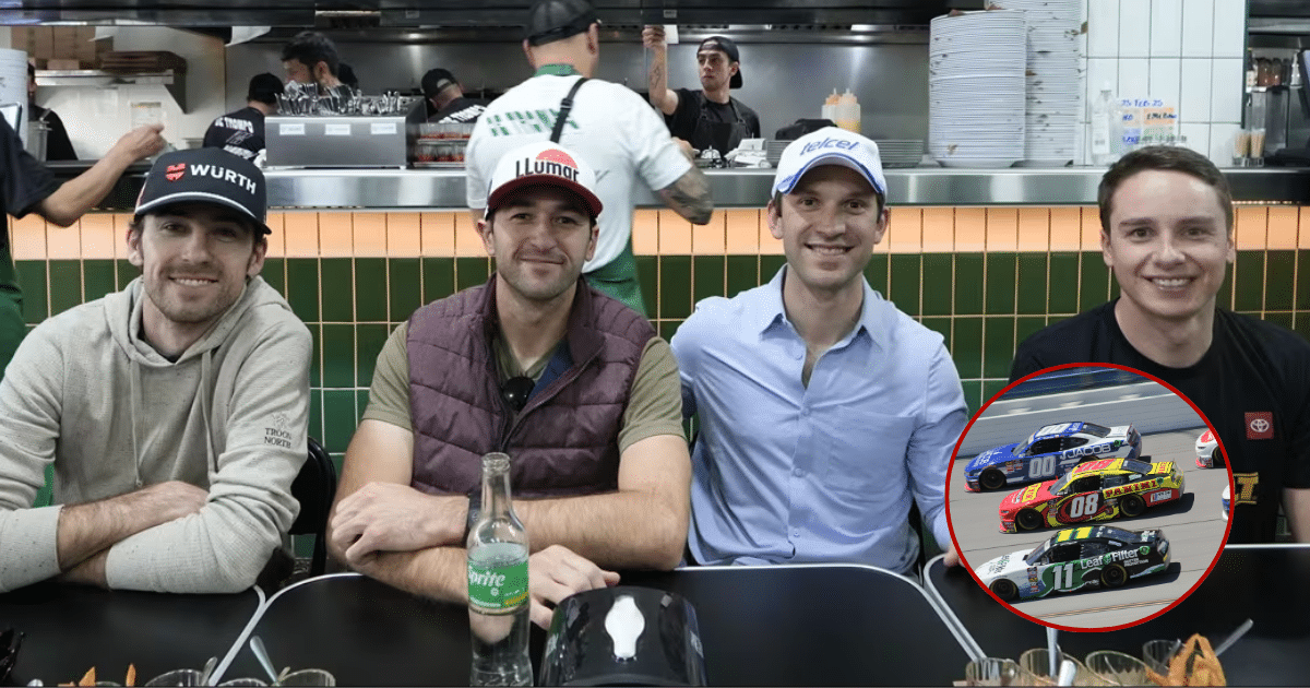 Chase Elliott (Hendrick Motorsports), Ryan Blaney (Team Penske) y Christopher Bell (Joe Gibbs Racing), además del mexicano, cortaron la carne del trompo y le colocaron la piña, verdura y salsa a los tacos que después se comieron.