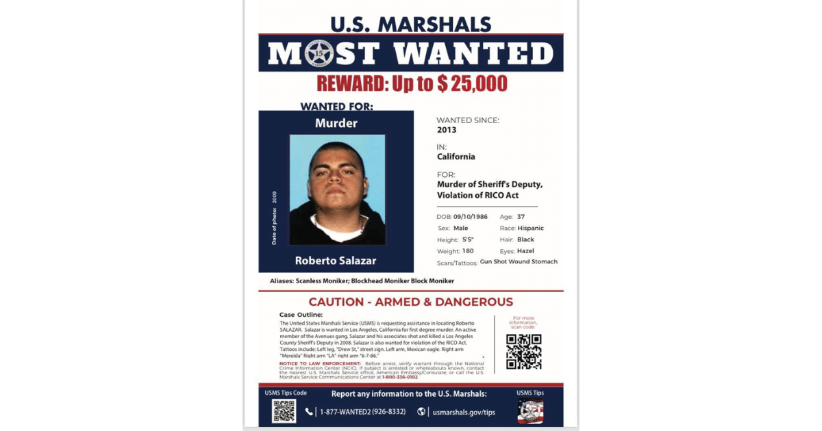 Cabe señalar que el detenido es uno de los más buscados por el Servicio de Marshals de los Estados Unidos.