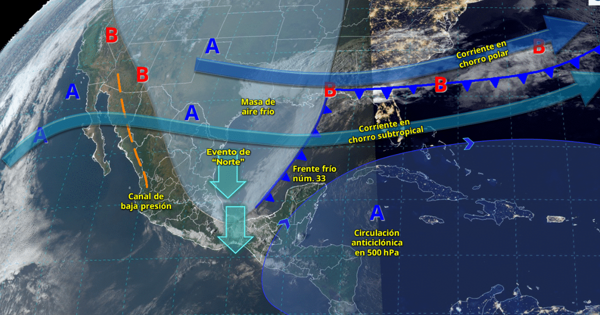 Frente Frío no. 33 propiciará lluvias intensas en el sureste mexicano y península de Yucatán