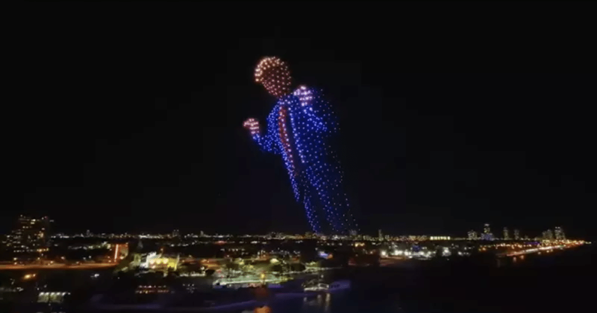 Por otro lado, los drones escribieron en el aire “UNA NUEVA ERA DORADA PARA AMÉRICA”, “UNA ERA DORADA PARA LA PAZ” y “UNA NUEVA ERA DORADA PARA LA ESPERANZA”, en letras mayúsculas.