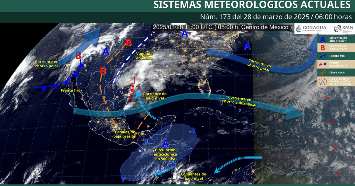 • 🌪️ Posibilidad de torbellinos en Tamaulipas y vientos intensos en gran parte del país.