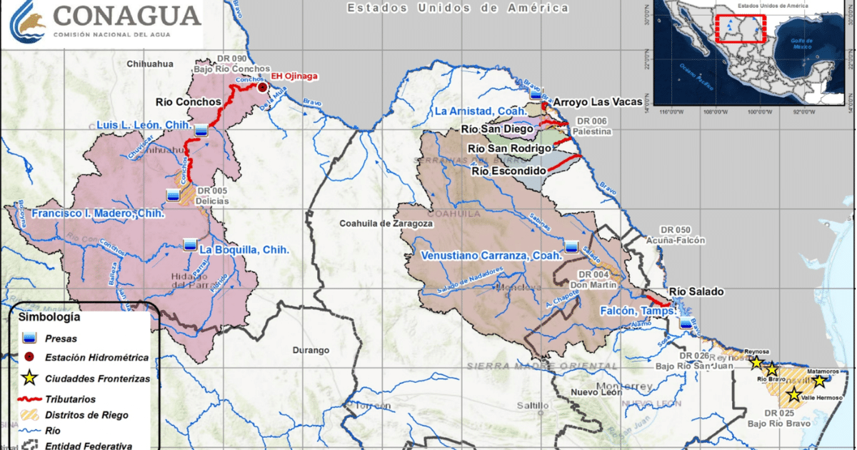 “El tratado es justo”, afirmó. “Estados Unidos entrega agua por el Río Colorado y México por el Río Bravo. De hecho, por las condiciones naturales, ellos entregan más volumen que nosotros, pero está estipulado así en el tratado y se cumple”.