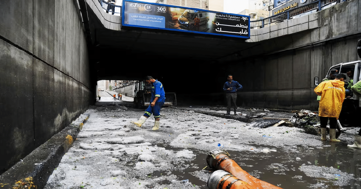 Una inusual tormenta de granizo impacta Alejandría, Egipto