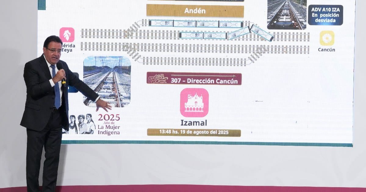 Luego de que se registrara el percance de vía del Tren Maya en la estación Izamal, en Yucatán, que involucró a los convoyes 304 y 307, el general Óscar David Lozano Águila, director general del Tren Maya, presentó los detalles en La Mañanera del Pueblo de la presidenta Claudia Sheinbaum.