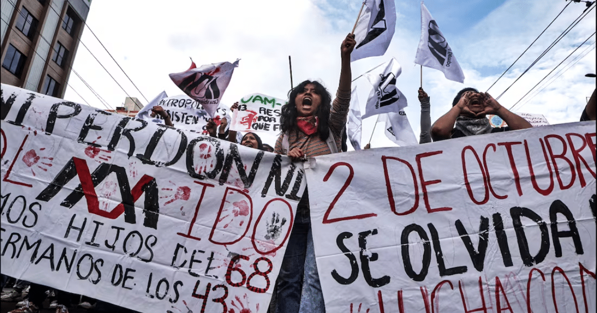 El Comité 68 Pro Libertades Democráticas anunció que la mega marcha de este año unirá a varias causas. Los manifestantes exigirán justicia por la desaparición de los 43 estudiantes de Ayotzinapa, visibilizarán la crisis de desaparecidos en el país y se unirán al llamado por la paz y el fin del “genocidio” en Gaza. Esta unión de causas es un reflejo de que la sociedad civil se mantiene atenta a las problemáticas que afectan al país y al mundo.