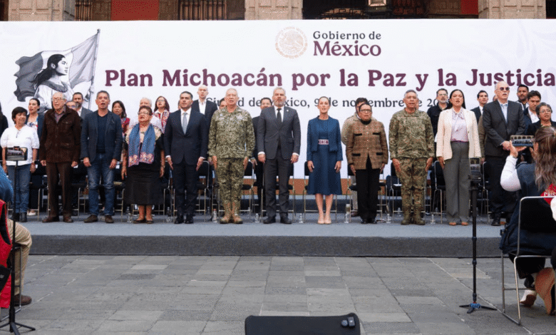 La Presidenta de México, Claudia Sheinbaum Pardo presentó los 12 ejes del Plan Michoacán por la Paz y la Justicia, una estrategia integral con más de 100 acciones y una inversión de más de 57 mil millones de pesos (mdp), incluyendo inversión mixta, que parte de la convicción profunda de que la seguridad se sostiene garantizando los derechos del pueblo a la educación, a la salud, a la vivienda y al empleo digno para el desarrollo con justicia y bienestar. Además, señaló que en 2026 se destinarán 37 mil 450 mdp en becas y programas para el Bienestar en beneficio de 1.5 millones de michoacanas y michoacanos.