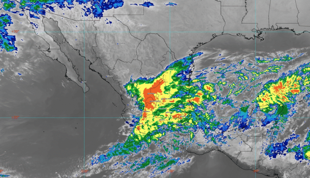 Mientras el oriente se empapa y el norte se congela, el Pacífico mexicano mantiene el calor. Estados como Sinaloa, Nayarit, Jalisco, Michoacán y Guerrero registrarán máximas de 35 a 40 °C, con lluvias aisladas debido al ingreso de humedad.
