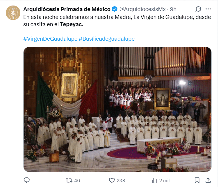 Cerca de 13 millones de peregrinos llegan a la Basílica de Guadalupe este 12 de diciembre