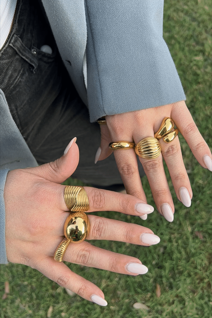 El estilo maximalista en joyería sigue ganando terreno. Las piezas de gran volumen —como cadenas gruesas, brazaletes impactantes y collares oversize— dominarán 2026, invitando a llevar varias piezas juntas para un efecto audaz y expresivo.