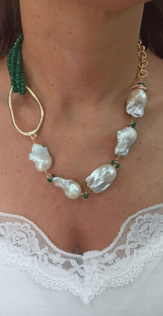 Los materiales con presencia —como cuarzos, gemas de colores vivos y cuentas artesanales— aportan personalidad y profundidad al look. Estas piezas no solo complementan un outfit, sino que cuentan una historia y resaltan la individualidad de quien las lleva.