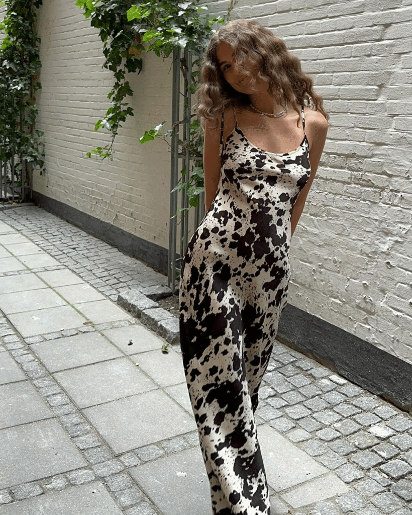El animal print no solo se mantiene, sino que en 2026 evoluciona. A los clásicos leopardo y cebra se suman dos estampados que ya están dominando pasarelas y street style: el print de vaca y el “Bambi print”, inspirado en venados, ciervos y tonos tierra con manchas suaves.
