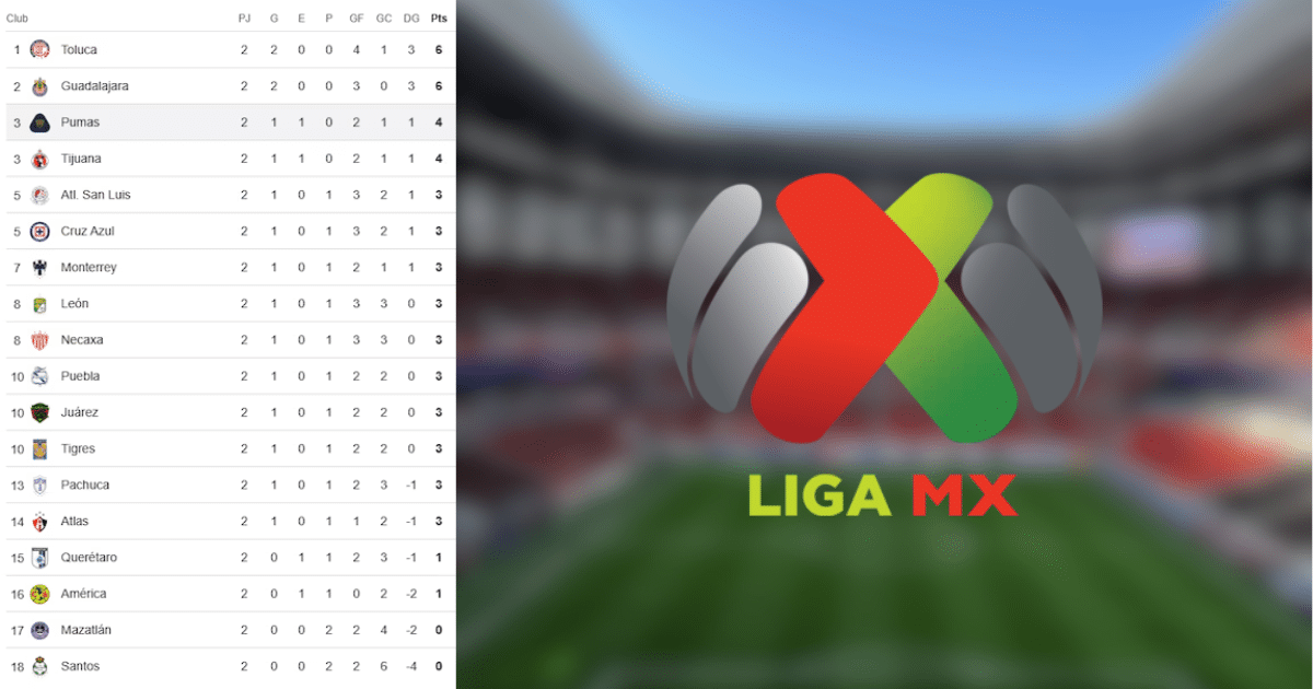 Liga MX: así se mueve la tabla general tras la Jornada 2 del Clausura 2026