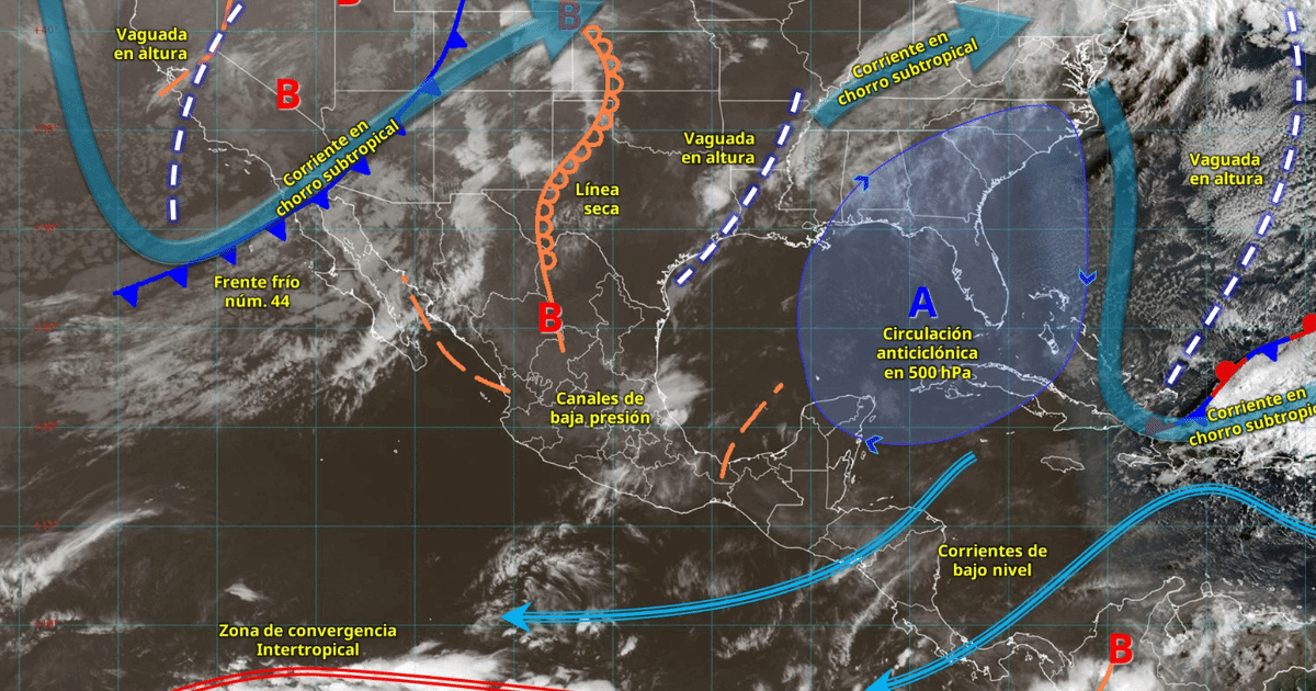 El frente frío núm. 44 provocará lluvias y torbellinos en el norte, mientras una intensa onda de calor elevará las temperaturas hasta los 45 °C en el sur.
